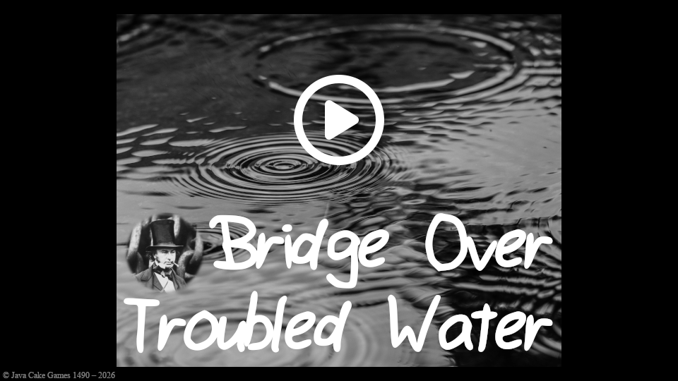 The game’s title is from Simon & Garfunkel’s 1970 album and titular song Bridge Over Troubled Water. As much as the game is, in a literal sense, about bridging over troubled water, it otherwise bears no resemblance to the moving lyrics.