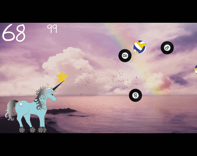 Pop the volleyballs, which can be easily punctured by your unicorn's pointy horn!